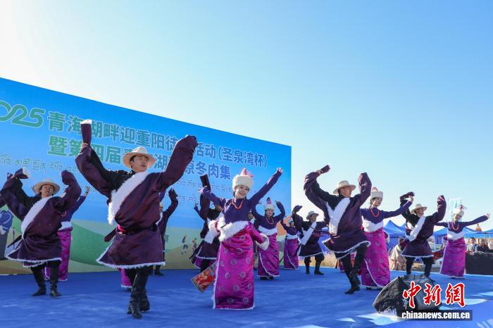 青海刚察:徒步爱好者青海湖畔品冬肉迎重阳