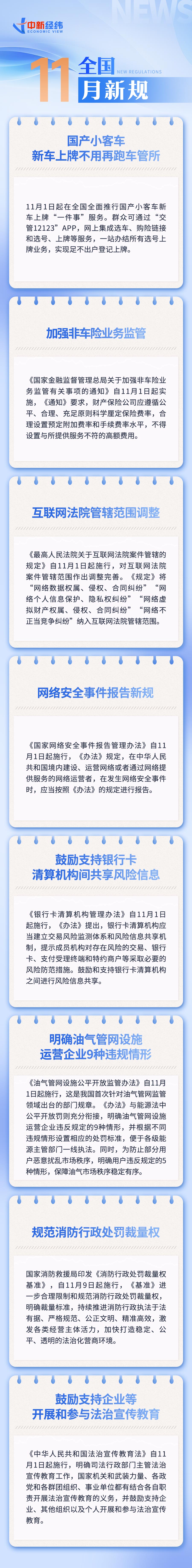 中新经纬10月29日电 (王永乐)邦产小客车新车上牌不必再跑车管所、互联网法院统率畛域调剂、海北离岛搭客免税买物策略调剂……2025年11月,1年夜波新规将实施,哪1项取您相关?